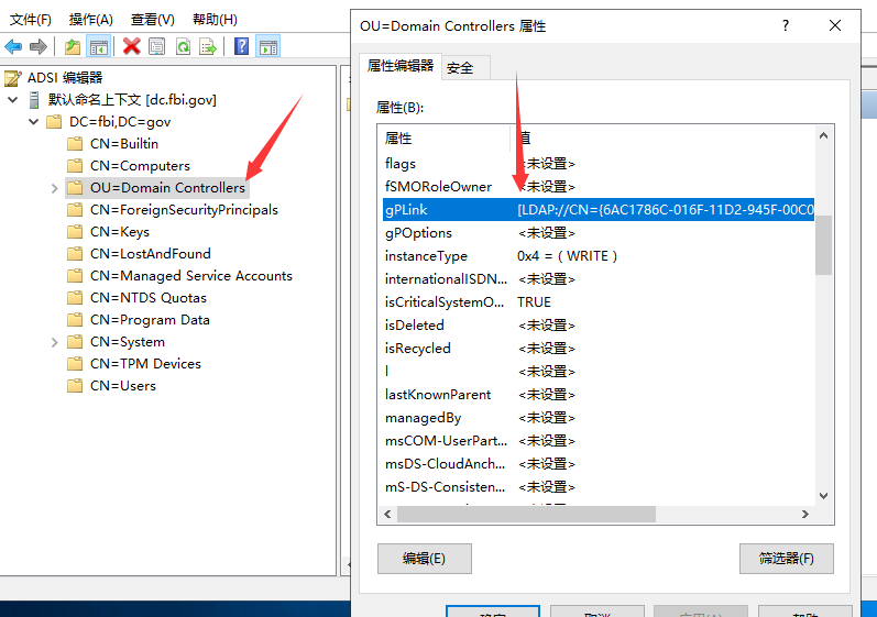 当某个对象应用了某个指定的组策略，该对象的gPLink属性及那个包含指向该组策略的完整DN