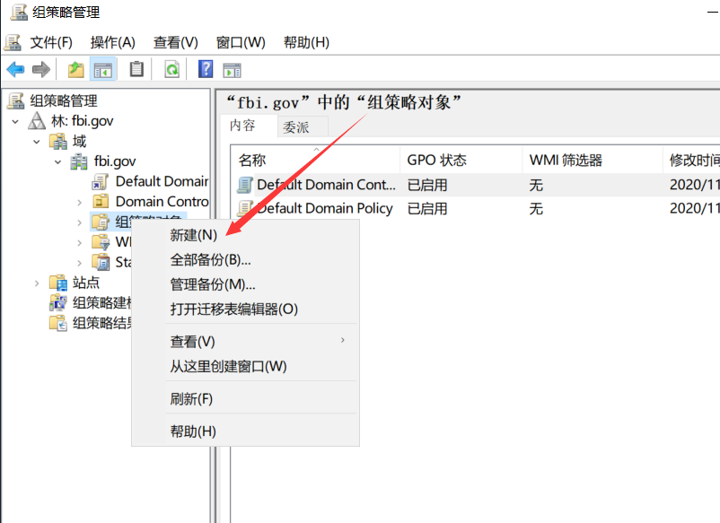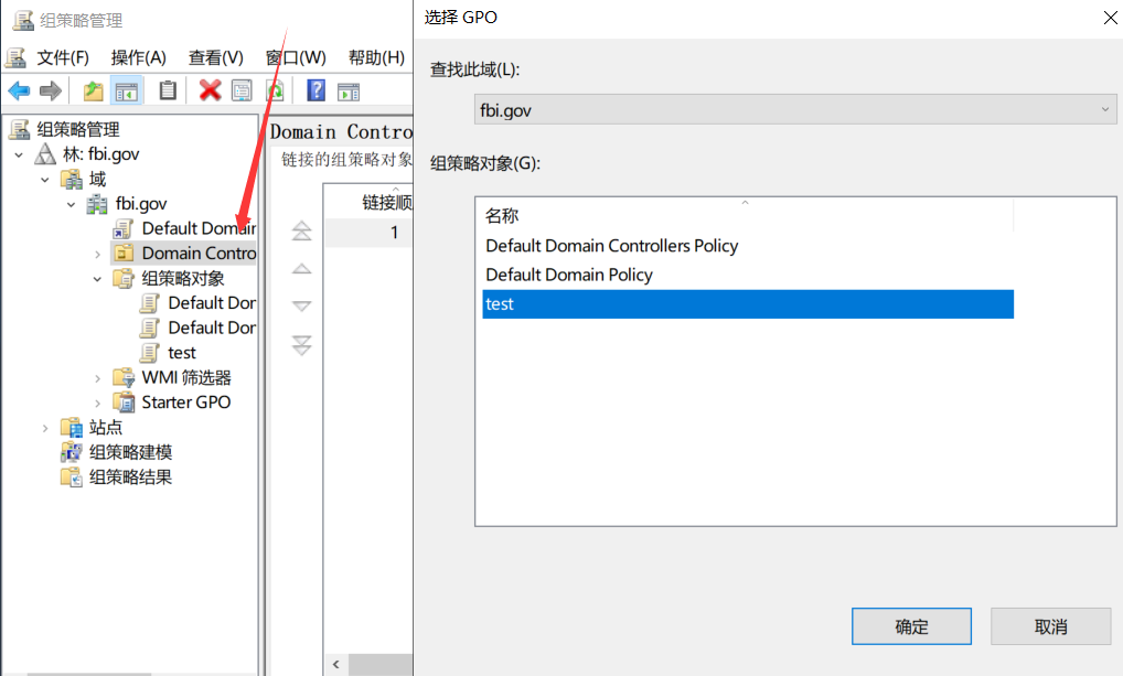 选择某组织单位(OU)，右击选择，链接创建的GPO